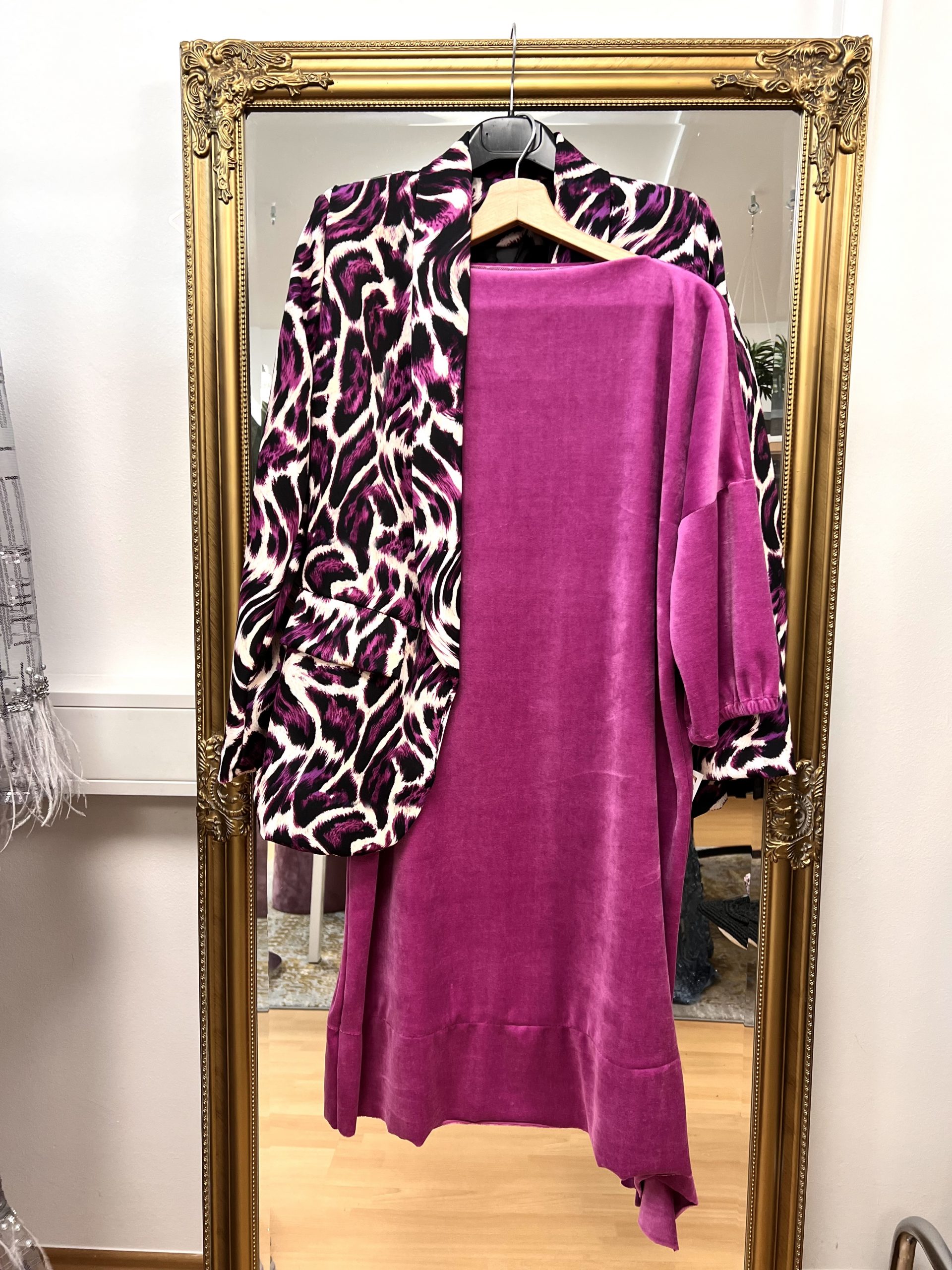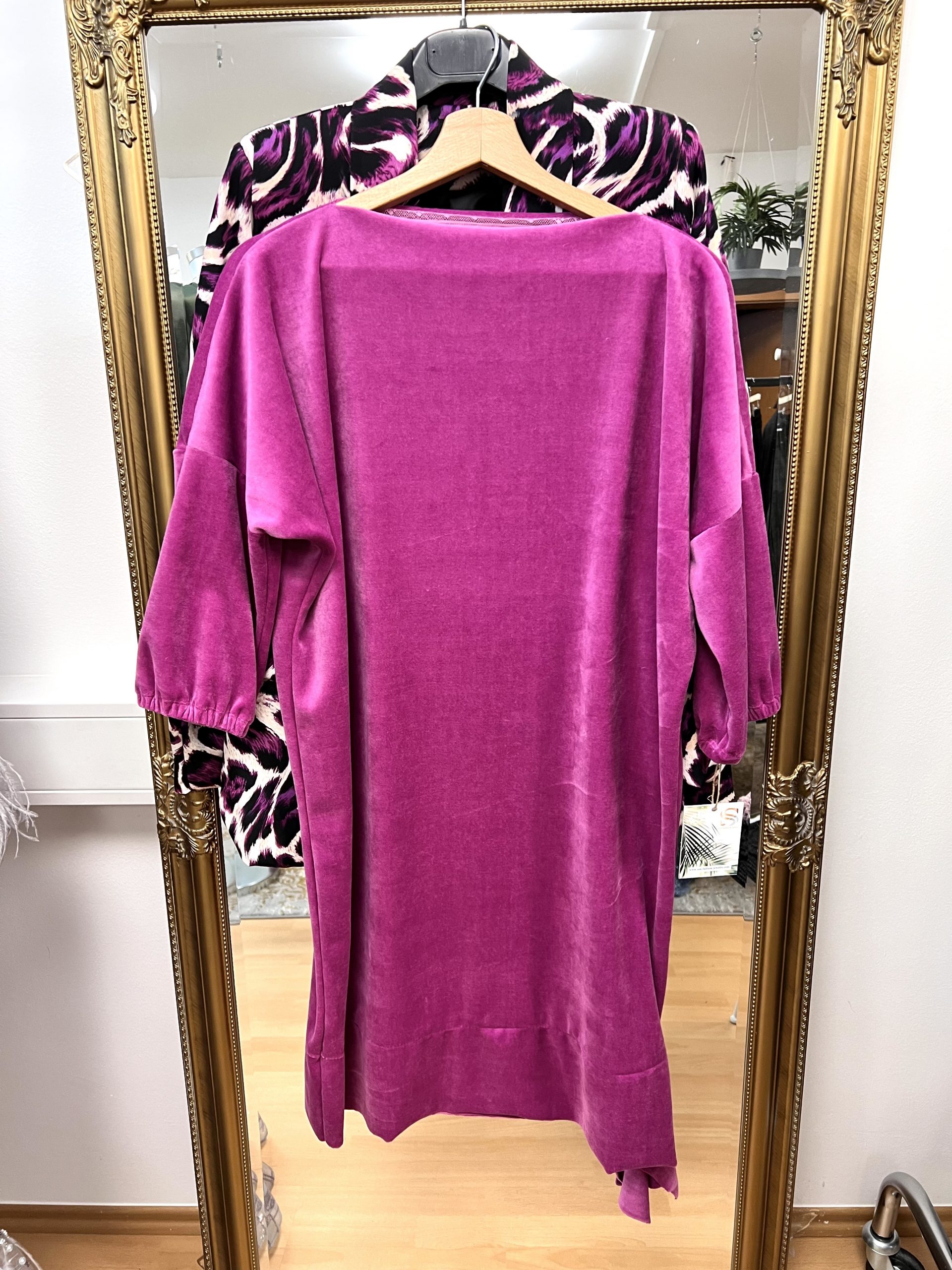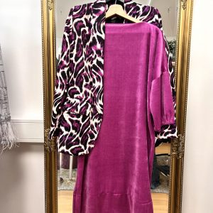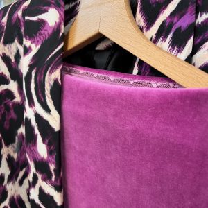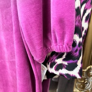 Plišasta modna obleka iz bombaža, primerna za različne priložnosti.