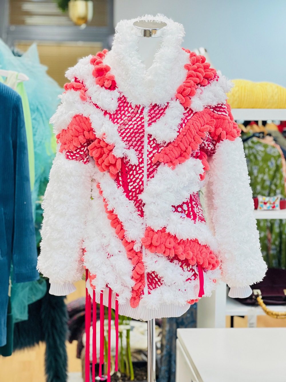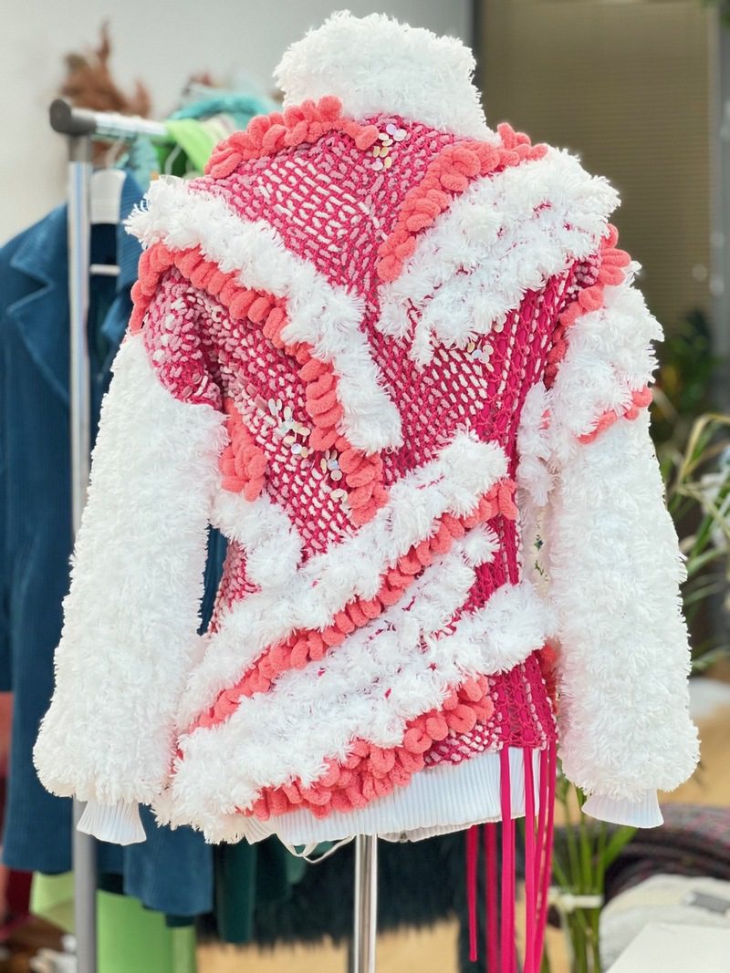 Extravagant “LOOPY JACKET SO SOFT“, which combines a combination of colors and textures.